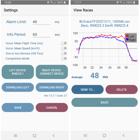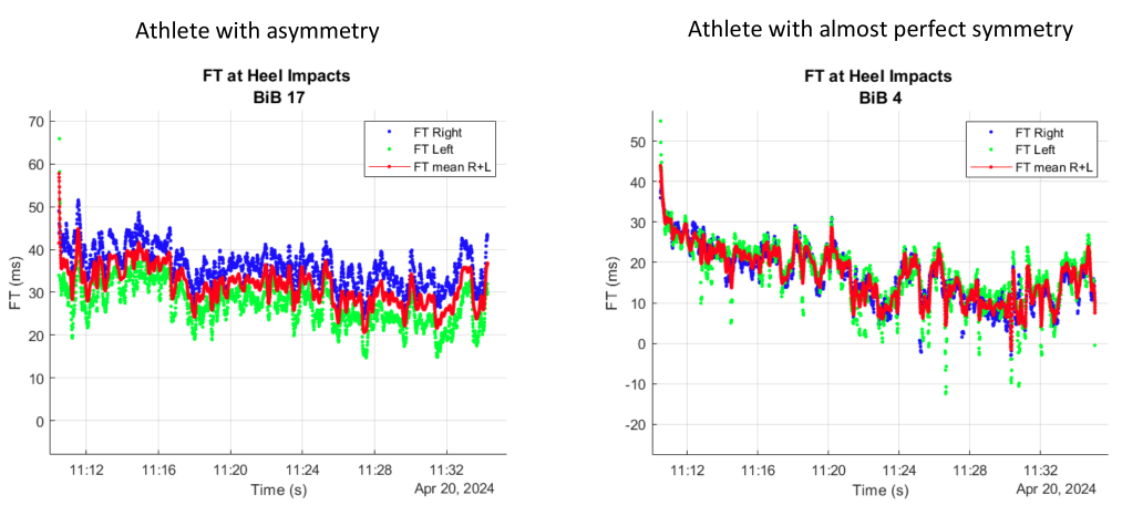 The effective (visual) Flight Time is an average of the Right and Left Leg Using both legs asymmetry could be measured