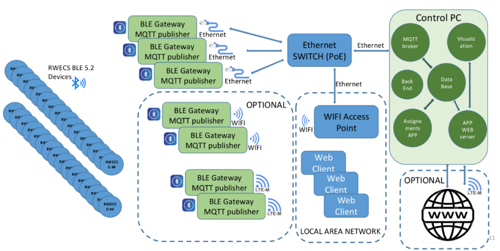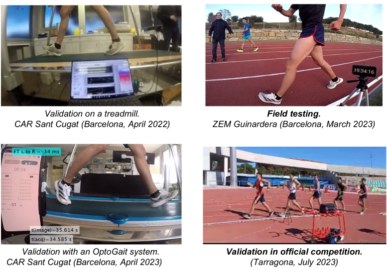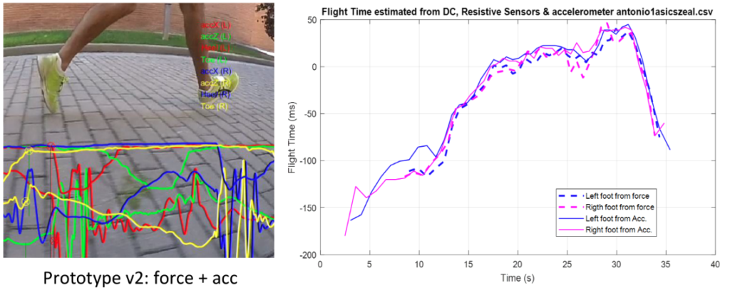 The devices measure the Time of the Heel-Impact and the Time of the Toe-off events, for each foot, step by step