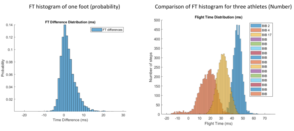 The histogram of the Flight Time could be obtained for a given period of time. For both feet or for a single foot.